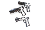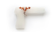 In 2019 and, again, in 2020, I received annual membership cards from the National Rifle Association of America, to be activated upon payment of their annual dues. I figured they got my contact information through a subscription I have to Cowboys and Indians, a shelter magazine I enjoy for its nostalgic coverage of the earthy lifestyle practiced in the western United States, a lifelong fantasy of this 'urban cowgirl'. However, unlike the myriad mailings we constantly receive to support organizations such as the Audubon Society, National Trust for Historic Preservation, or Sierra Club, groups to which we might make a small donation so as not to feel guilty about keeping the 'free' pads, bookmarks and return address labels enclosed, the NRA solicitations truly disturbed me, even though I knew they came from an unsanctioned mailing list. My love for the American west notwithstanding, I couldn't bear to have my name associated with such a group. Dutch jeweler Rian de Jong often uses her work to tackle controversial moral and social issues in her provocative new series, triggered, she takes on the politically fraught topic of gun control. For One World, Gallery Loupe's online exhibition dedicated to jewelry inspired by the Covid-19 pandemic (2020), she made 'Hey Guys, Shoot That Damn Thing' a necklace of two pendants, one in the shape of a gun made of cardboard, and the other a model of the virus, a coral piece, which is meant to annihilate. While doing background research for the piece, she learned that gun sales were increasing at an alarming rate in the USA during the pandemic. In fact, in 2021, alone, there were over 20,000 gun-related deaths in the United States (not counting suicides). She wondered why this was so, whether it was a universal phenomenon, and, if not, what cultural deviations might account for the disparity. Since then, de Jong has been haunted by firearms. In reading about historic pistols used in the American west, she came upon their designation as 'peace makers', begging the question, 'Have weapons ever made peace?' Guns habitually bring only destruction and death. Symbols for blood figure prominently in triggered. A series of brooches modelled in clay take the shape of revolvers displaying red-pigmented barrels and grips. Another pistol is assembled from red sticks of wax. The most graphic depiction of blood, however, is seen in a large hand gun, constructed out of blackberry bush branches, from which red threads terminating in clay droplets descend. In fact, if one doesn't handle this object with extreme care, the stems' sharp thorns will painfully pierce the skin, drawing the real thing. Implied violence notwithstanding, the works in triggered carry mixed messages. De Jong employs visual puns, portraying some of the weapons as useless or equivocal, and in so doing, effectively dilutes their potency. |