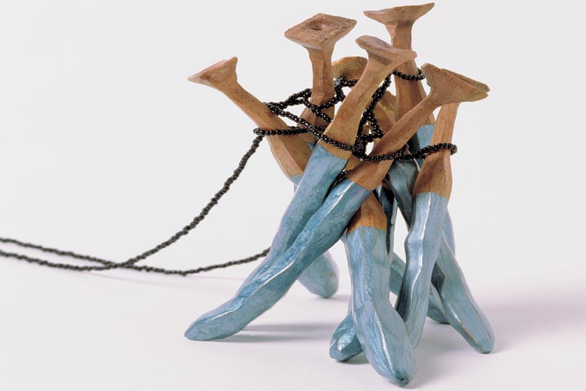 wood, beads, hammer-paint