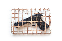 The red wax gun, form fit within a custom-made box, would melt if removed by a warm hand. 'Behind Bars', a black wax revolver its contours encased in sturdy electroformed copper. Even if the wax melts, it is nonetheless confined to its cage. Three electroformed copper pistols exhibit outlines which create a variety of negative gun-like shapes, suggesting they've shot each other. A benign soft pistol emerges from a sheet of beige plastic foam; and a blue pendant formed from wrapped copper wire that has been painted blue, and then threaded askew on a thin cord, is not immediately apparent as the image of a gun, until you study it closely. It is De Jong's wish that these brutalweapons 'evoke a smile, a question, a thought and possibly also a sense of responsibility'. She regards them as both objects and jewelry, indicating that we can wear them, hold them in our hands, stick them in our waistbands, in a holster on our belts, or under our armpits; we can even put them in our socks. With the works that comprise triggered, De Jong aims to encourage gun supporters driven by fear, insecurity, prejudice, and paranoia to focus on the murderous potential of weapons. And to rebuke the miscreants that incite hostile acts, either through conviction, coercion, or greed. Perhaps by raising awareness, we may find a way to control guns. We must. There is so much at stake. Rian de Jong is an internationally recognized artist who has been making for four decades. She has been the subject of numerous solo exhibitions and been included in countless group shows. Her work is represented in the collections of many museums around the world, including the Cooper Hewitt Smithsonian Design Museum and Museum of Arts and Design in New York; The Nelson-Atkins Museum of Art, Kansas City, Missouri and many others. An inveterate traveler, de Jong cites her passion for new and unfamiliar cultures and materials as her prime motivating force. |